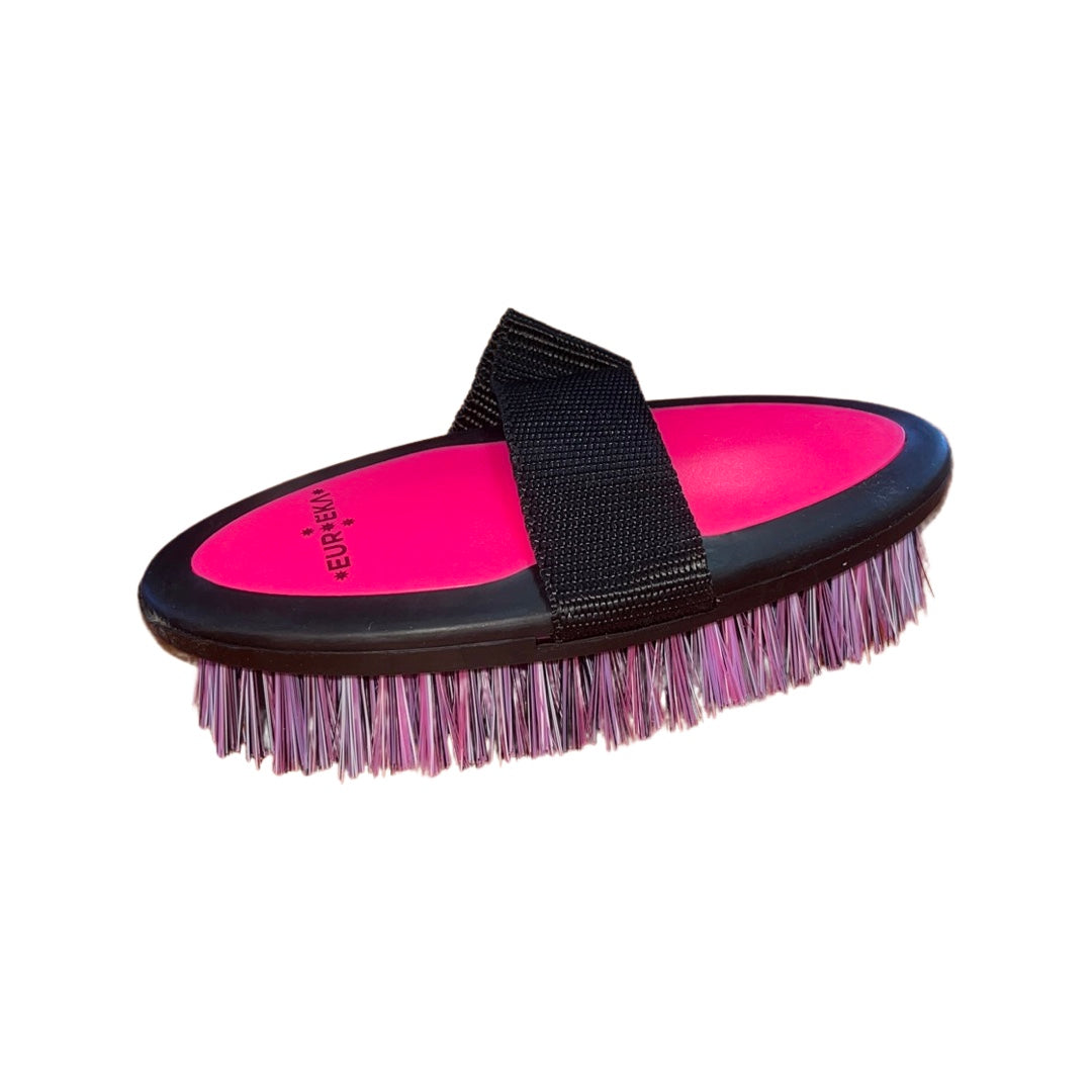 The Eureka Ezee Grip Body Brush has a hand strap and measures 7″ x 3″.