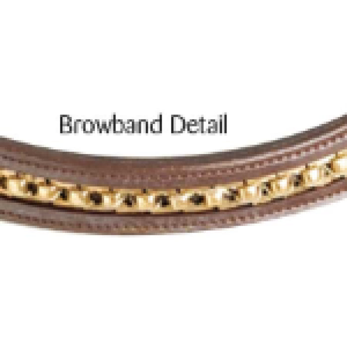 This model features a brass chain inlay on the browband and a hanoverian noseband. It comes complete with webbing continental reins. All brass fittings.