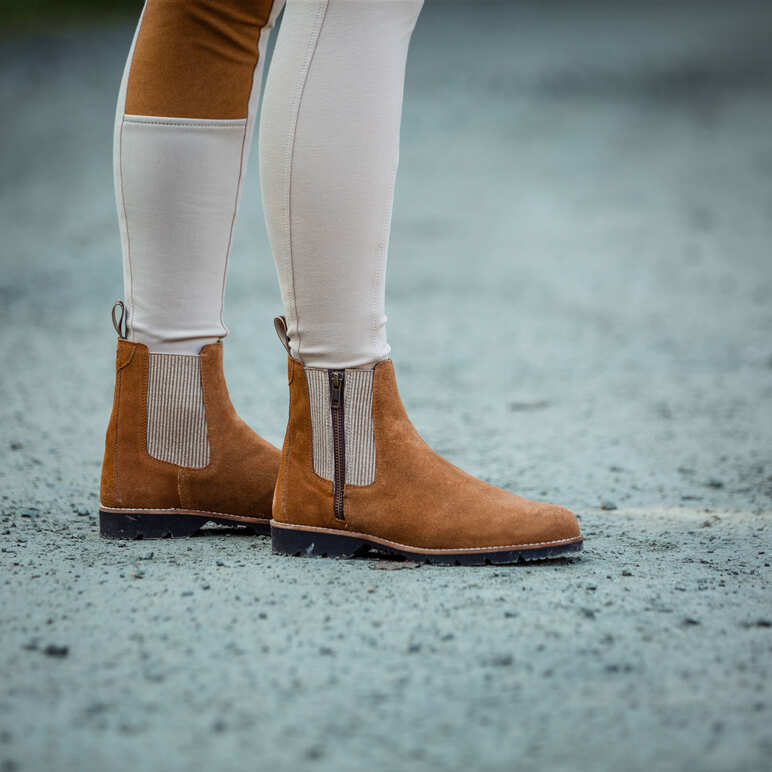 The Horze Kensington boots feature practical elastic and a zipper at the side. The comfortable rubber sole makes them wearable everyday, and decorative stitching gives a special touch. The soft insole and checked lining are so cosy, you won't want to take them off!