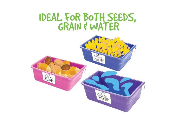 - Rectangular feeder/drinker cups are easily fixed into place with metal hanging hooks